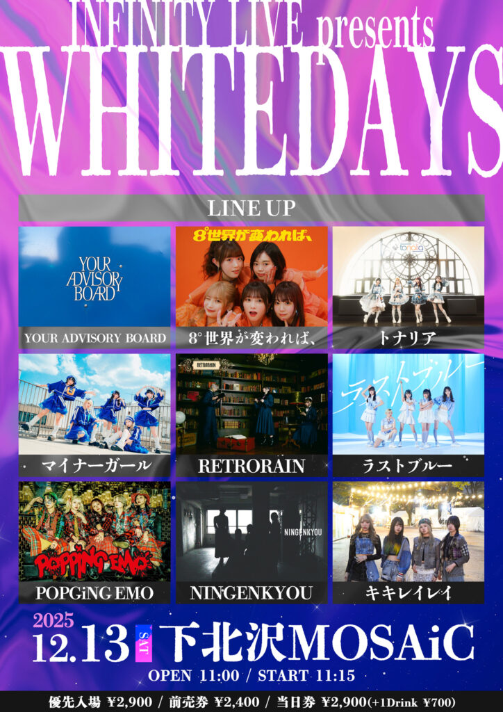 12月13日(土) 下北沢MOSAiC "NIGHT" INFINITY LIVE presents『WHITEDAYS』 出演雨...