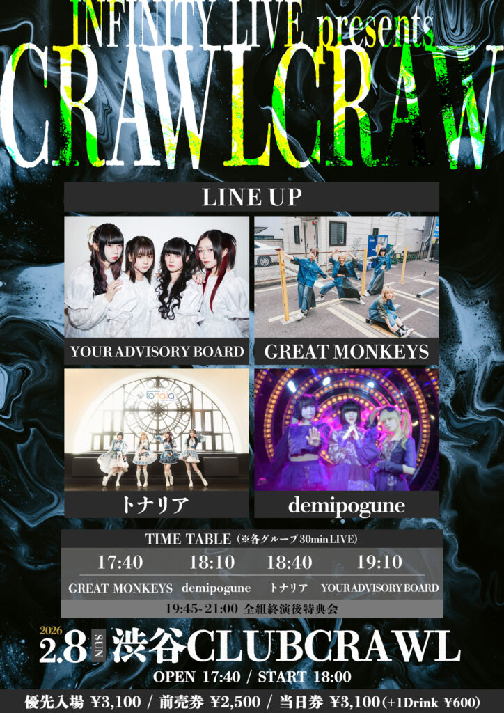 2月8日(日) 渋谷CLUB CRAWL INFINITY LIVE presents『CRAWLCRAW』 <出演>YOUR AD... -