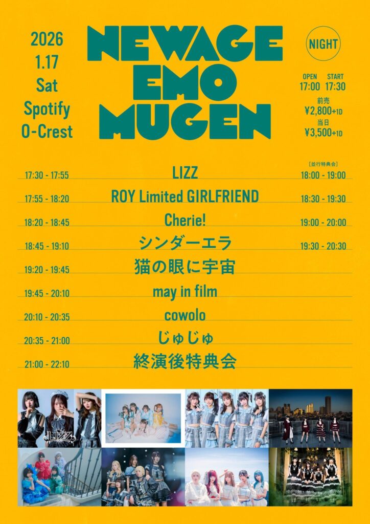 1月17日(土) 渋谷Spotify O-Crest『NEW AGE EMO MUGEN』 <出演>cowoloCherie... -