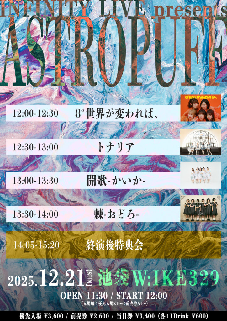 優先入場 ¥3,600 / 前売券 ¥2,600 / 当日券 ¥3,400(各+1Drink ¥600)