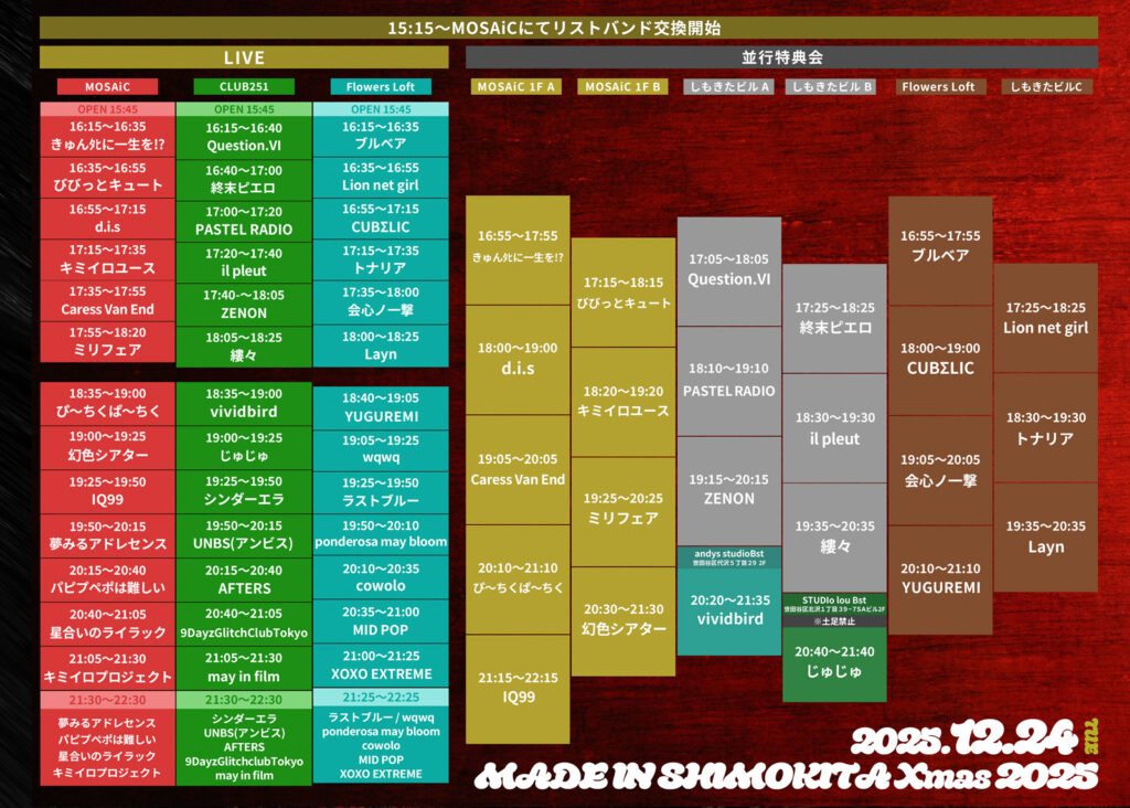 (※15:15より下北沢MOSAiCにて整列順でリストバンド交換開始)