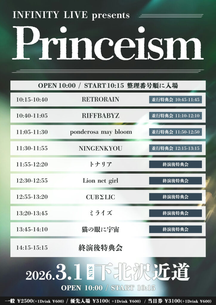 一般 ¥2500 / 優先入場 ¥3100 / 当日券 ¥3100