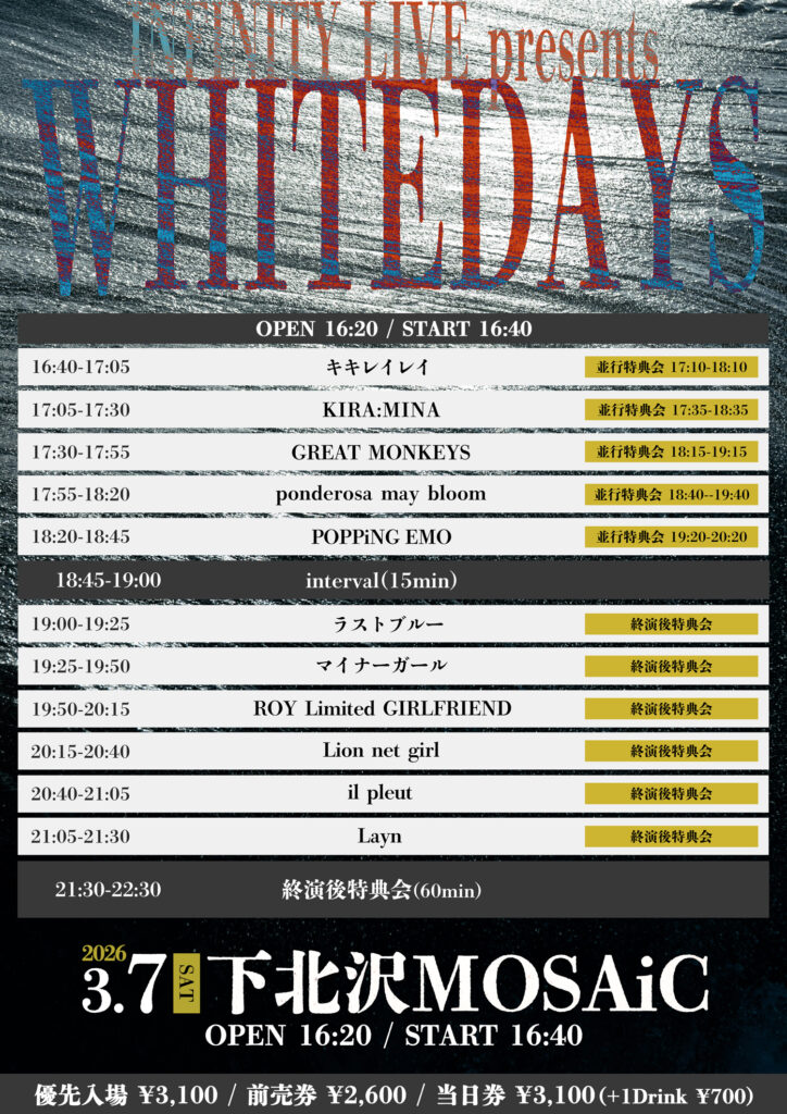 3月7日(土)下北沢MOSAiC『WHITEDAYS』