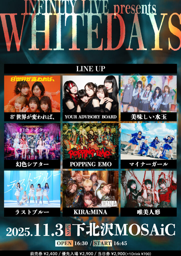 11月3日(月祝) 下北沢MOSAiC INFINITY LIVE presents『WHITEDAYS Day』 <出演>po... -