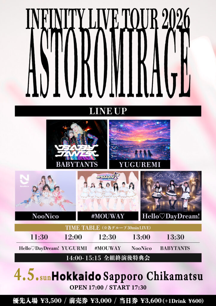 4月5日(日) 北海道 札幌近松 INFINITY LIVE TOUR 2026『ASTOROMIRAGE - SAPPOLO DA... -