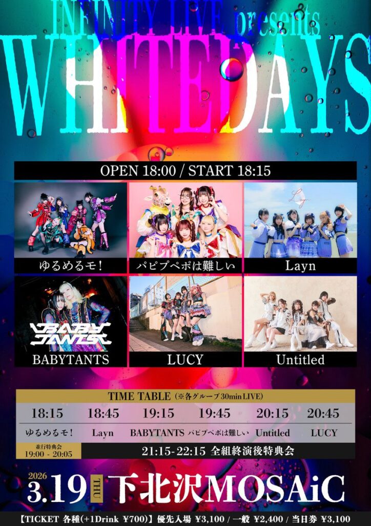 3月19日(木) 下北沢MOSAiC INFINITY LIVE presents『WHITEDAYS』 <出演>ゆるめる... -